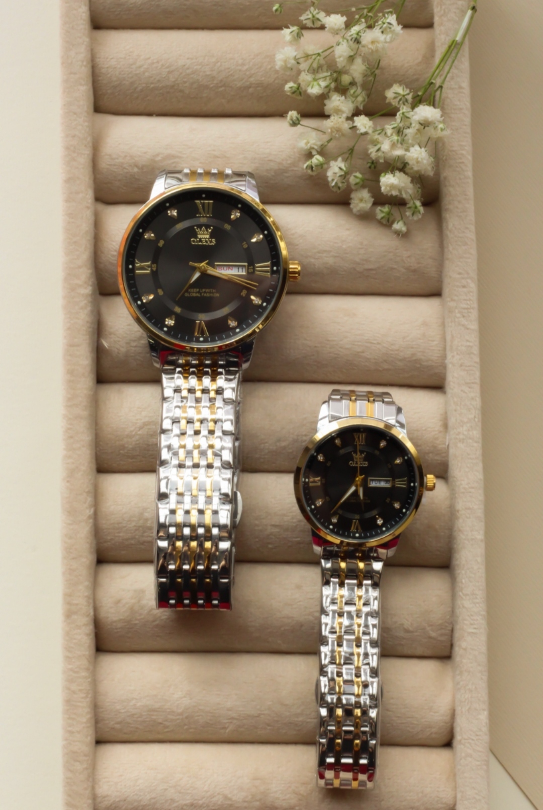دستهبندی: ساعت ستبرند: Olevsبند: وستاریبدنه و بند: استیل درجه یکقفل: قفل پروانه ای استیل مخفی با کیفیتجنس شیشه : سافایر ضد خشویژگی ها : روز شمار ، ایام هفته ،صفحه شب نما , طرح الماسموتور : کوارتزمناسب برای : زوج های خوش سلیقهنمایش بیشتر