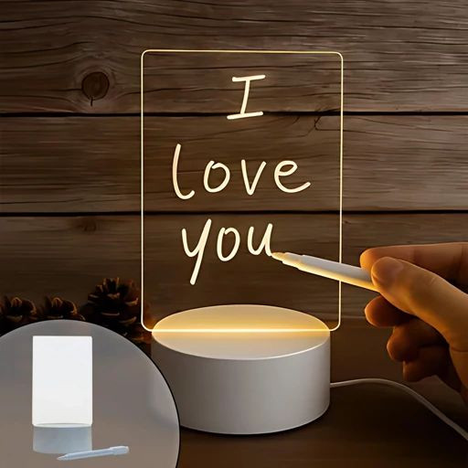 مهمترین ویژگی این چراغ رومیزی داشتن یک قلم ویژه برای نوشتن یادداشت ها ، یادآوری ها و اطلاع رسانی های شما روی صفحه پلاستیکی شفاف چراغ است که با تابیده شدن نور به صفحه متن برای شما قابل نمایش می شود، این قلم دارای یک پاکن نیز هست که به سادگی می توانید از آن استفاده کرده و متن نوشته شده را پاک نمایید.